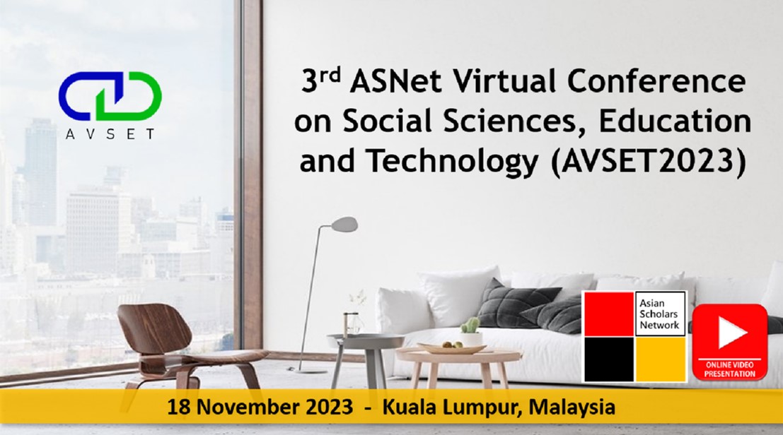 Asian Scholars Network (ASNet) will be organizing the 3rd ASNet Virtual Conference on Social Sciences, Education and Technology (AVSET2023) in Kuala Lumpur, Malaysia. The objective of the multidisciplinary conference is to gather leading academicians, scholars and researchers to share their knowledge and new ideas as well as to discuss current development in their respective fields. In addition, the conference also offers opportunities for academicians and industry experts to meet and interact with local and international participants.