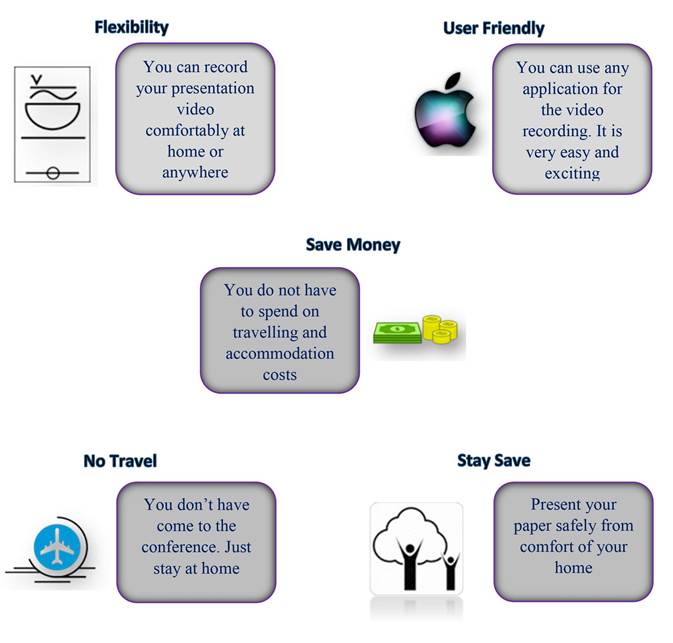 In consideration of the COVID-19 pandemic and certain travel limitations, in particular for international delegates, now you can present your paper from the comfort of your home. Just send us your 10-15 minutes pre-recorded video presentation and slides. The video will be posted in our YouTube channel on the conference day. It saves time, money and more importantly, we stay safe. It's the New Norm!