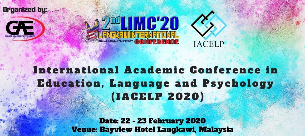 International Academic Conference in Education, Language and Psychology (IACELP) are organize by Global Academic Excellence (GAE) will be held on 22nd (Saturday) and 23rd (Sunday) February 2020 at The Bayview Hotel Langkawi, Malaysia. This conference provide a platform for the intellectuals from various fields and disciplines in Education, Language and Psychology to debate and discuss the current issues worldwide as well as finding solutions to the problems, exchange and share their knowledge with others.This conference is held under Langkawi International Multidisciplinary Conference 2020 (2nd LIMC 2020), in which it covers others 8 conference as follows: