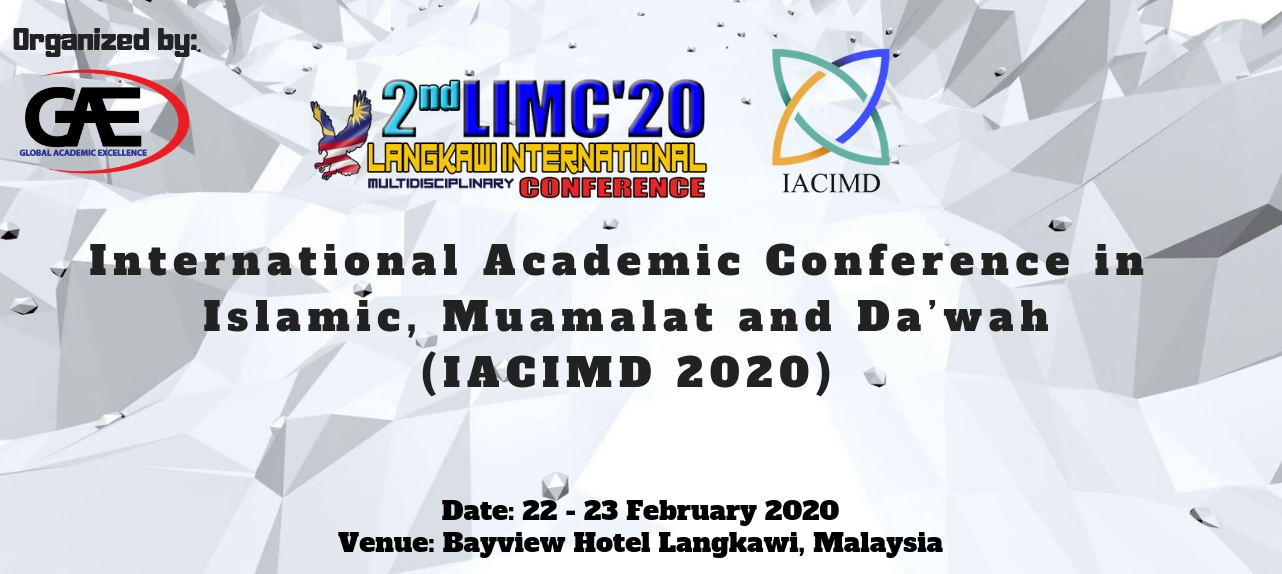 International Academic Conference in Islamic, Muamalat and Da’wah (IACIMD) are organize by Global Academic Excellence (GAE) will be held on 22nd (Saturday) and 23rd (Sunday) February 2020 at The Bayview Hotel Langkawi, Malaysia. This conference provide a platform for the intellectuals from various fields and disciplines in Islamic, Muamalat and Da’wah to debate and discuss the current issues worldwide as well as finding solutions to the problems, exchange and share their knowledge with others. This conference is held under Langkawi International Multidisciplinary Conference 2020 (2nd LIMC 2020), in which it covers others 8 conference as follows: