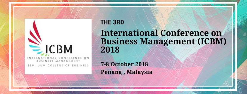 School of Business Management Universiti Utara Malaysia, invites you to participate in The 3rd ICBM to be held on 7-8 October 2018 in Penang, Malaysia. The 3rd ICBM is a multidisciplinary conference which covers the topics of management, marketing, human resource, entrepreneurship and others. The 3rd ICBM welcomes innovative researchers, academicians and doctoral students to present your research work or just attend. Our conference enables you to present your research, meet new colleagues, develop new networking circles, and improve your research skills, all with highly affordable price.
