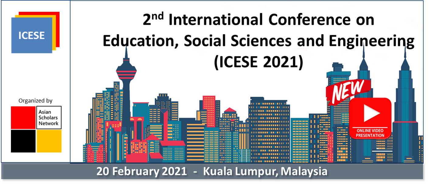 2nd International Conference on Education, Social Sciences and Engineering 2021 (ICESE 2021) will be held on 20 February 2021 in Kuala Lumpur, Malaysia. The objective of the multidisciplinary conference is to gather leading academicians, scholars and researchers to share their knowledge and new ideas as well as to discuss current development in their respective fields. In addition, the conference also offers opportunities for academicians and industry experts to meet and interact with local and international participants.