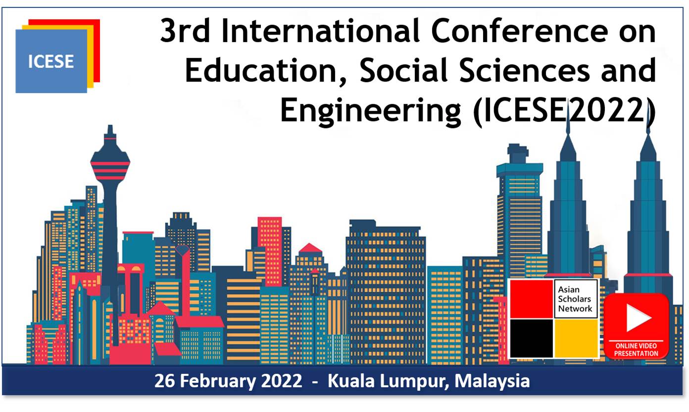 3rd International Conference on Education, Social Sciences and Engineering 2022 (ICESE2022) will be held on 26 February 2022 in Kuala Lumpur, Malaysia. The objective of the multidisciplinary conference is to gather leading academicians, scholars and researchers to share their knowledge and new ideas as well as to discuss current development in their respective fields. In addition, the conference also offers opportunities for academicians and industry experts to meet and interact with local and international participants.