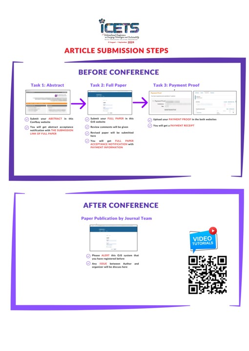 b. Abstract and Full Paper Format - Strictly follow the template which can be downloaded at the conference website: https://icets.umt.edu.my/