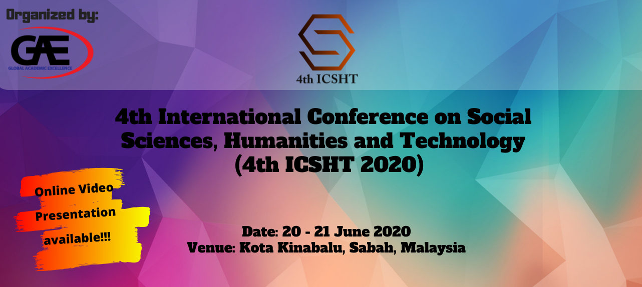 4th International Conference on Social Sciences, Humanities and Technology 2020 (4th ICSHT 2020) are organize by Global Academic Excellence (GAE) will be held on 20th June 2020 . This conference provides a platform for the intellectuals from various fields and disciplines in Social Sciences, Humanities and Technology to debate and discuss the current issues worldwide as well as finding solutions to the problems, exchange and share their knowledge with others.