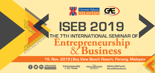 On behalf of the organizing committee, we are pleased to announce that the 7th International Seminar on Entrepreneurship & Business (ISEB 2019) will be held in 16 November 2019 in Penang, Malaysia. ISEB 2019 provides an ideal academic platform for researchers to present the latest research findings and describe emerging technologies, and directions in Entrepreneurship and Business issues. The conference seeks to contribute to presenting novel research results in all aspects of innovation in Entrepreneurship and Business.