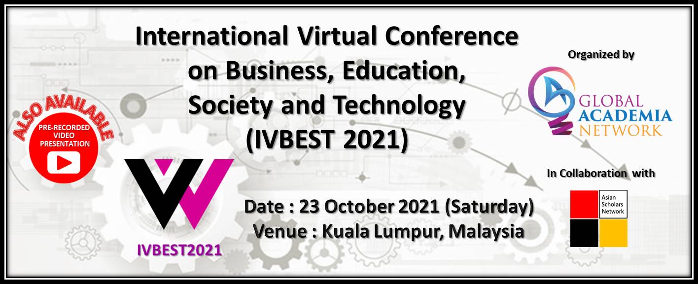 It is our great pleasure to announce the International Virtual Conference on Business, Education, Society and Technology (IVBEST 2021) and we would like to invite you to participate in the event. The conference will be held on 23 October 2021 in Kuala Lumpur, Malaysia. The main objective of IVBEST 2021 is to provide a platform for researchers, professionals, scholars and academicians to exchange and share their knowledge, information, new ideas and experience in person with their peers expected to join from different parts on the world. This gathering will help the delegates to establish research or business relations as well as to find international linkage for future collaborations in their career path. We hope that IVBEST 2021 outcome will lead to significant contributions to the knowledge base in these up-to-date scientific fields in scope. In addition, this conference will also offer opportunities for academicians, researchers, engineers, economist, entrepreneurs, journalist and industry experts to meet and interact with local and international participants.