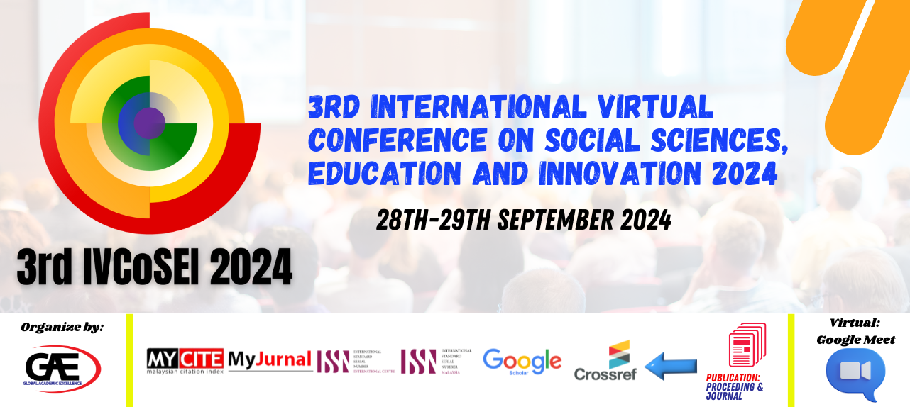 The 3rd International Virtual Conference on Social Sciences, Education and Innovation 2024 (3rd IVCoSEI 2024) organized by Global Academic Excellence (M) Sdn Bhd (GAE) will be held on 28th-29th September 2024 through Virtual (Google Meet). This conference provides a platform for academicians, researchers, professionals, intellectuals and scholars from various fields and disciplines to debate and discuss the current issues worldwide as well as finding solutions to the problems, exchange and share knowledge and information, establish business or research relationships and find global partners for future collaboration.