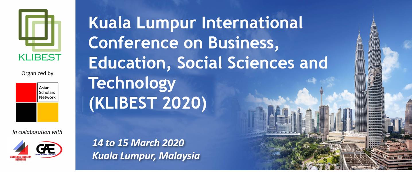 Kuala Lumpur International Conference on Business, Education, Social Sciences and Technology (KLIBEST 2020), organized by Asian Scholars Network (ASNet) in collaboration with Academia Industry Networks (ACINETWORKS) and Global Academic Excellence (GAE) will be held on 14 March 2020 in Kuala Lumpur, Malaysia. The objective of the conference is to gather leading academicians, scholars and researchers to share their knowledge and new ideas as well as to discuss current development in the fields of business, education, social sciences and technology. In addition, the conference also offers opportunities for academicians and industry experts to meet and interact with local and international participants.