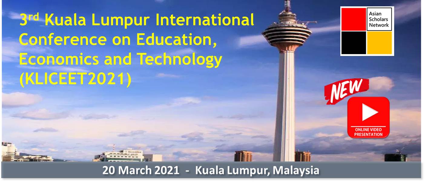 3rd Kuala Lumpur International Conference on Education, Economics and Technology 2021 (KLICEET 2021) will be held on 20 March 2021 in Kuala Lumpur, Malaysia. The objective of the multidisciplinary conference is to gather leading academicians, scholars and researchers to share their knowledge and new ideas as well as to discuss current development in their respective fields. In addition, the conference also offers opportunities for academicians and industry experts to meet and interact with local and international participants.