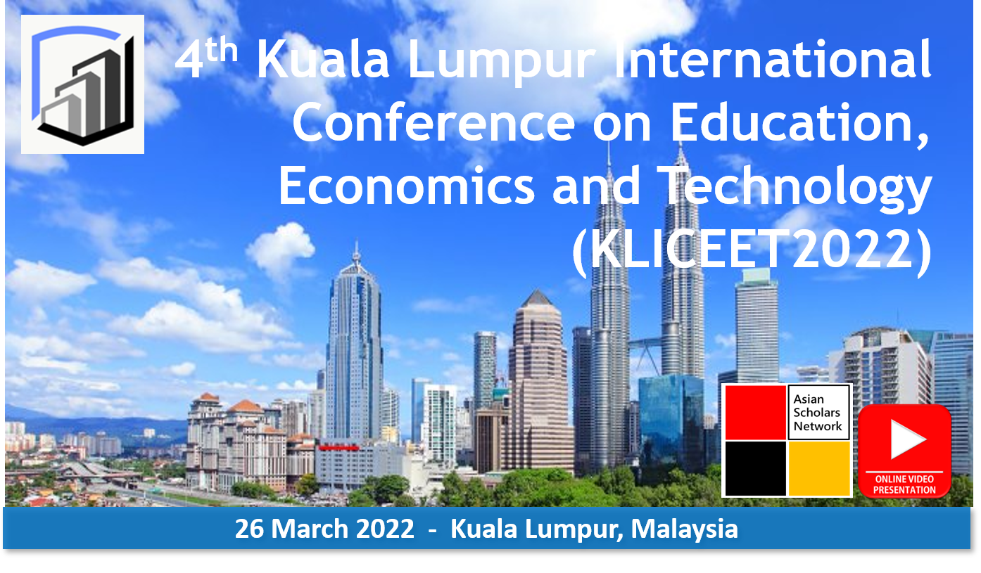 4th Kuala Lumpur International Conference on Education, Economics and Technology 2022 (KLICEET2022) will be held on 26 March 2022 in Kuala Lumpur, Malaysia. The objective of the multidisciplinary conference is to gather leading academicians, scholars and researchers to share their knowledge and new ideas as well as to discuss current development in their respective fields. In addition, the conference also offers opportunities for academicians and industry experts to meet and interact with local and international participants.