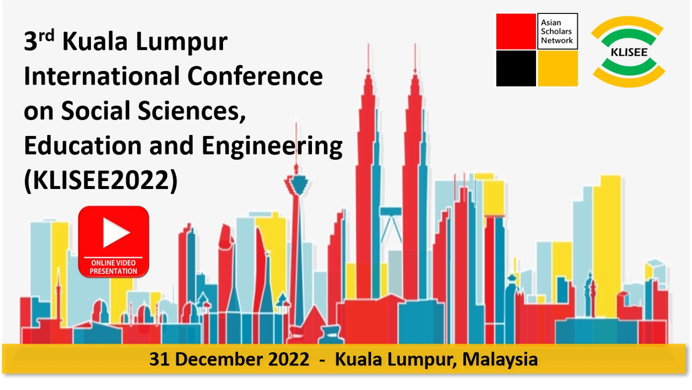 3rd Kuala Lumpur International Conference on Social Sciences, Education and Engineering (KLISEE2022) will be held on 31 December 2022 in Kuala Lumpur, Malaysia. The objective of the multidisciplinary conference is to gather leading academicians, scholars and researchers to share their knowledge and new ideas as well as to discuss current development in their respective fields. In addition, the conference also offers opportunities for academicians and industry experts to meet and interact with local and international participants.