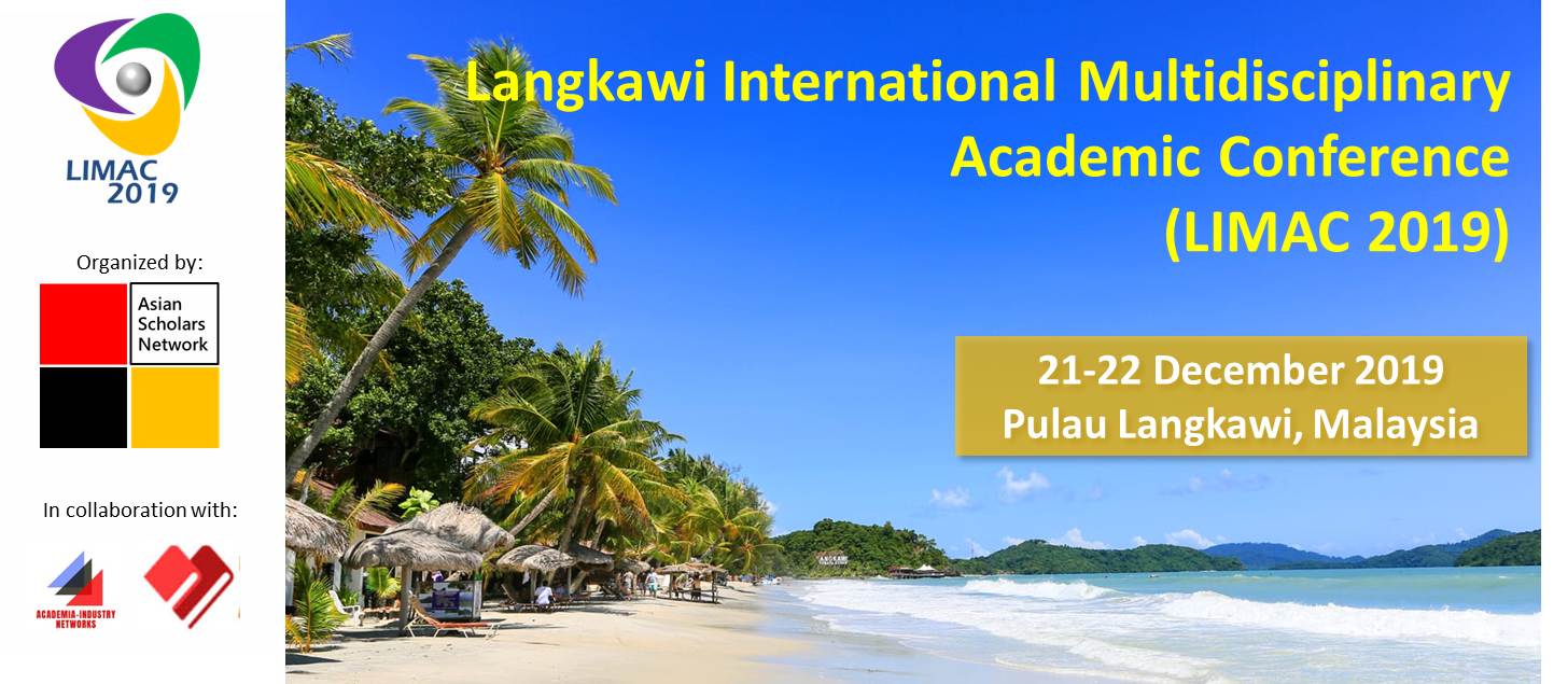 Langkawi International Multidisciplinary Academic Conference (LIMAC 2019), organized by Asian Scholars Network (ASNet) in collaboration with Academia Industry Networks (ACINETWORKS) Global Academic Excellence (GAE) and Penerbit Akademia Baru will be held on 21-22 Dec 2019 (Saturday/Sunday) in Langkawi, Malaysia. The objective of the multidisciplinary conference is to gather leading academicians, scholars and researchers to share their knowledge and new ideas as well as to discuss current development in the fields. In addition, the conference also offers opportunities for academicians and industry experts to meet and interact with local and international participants.