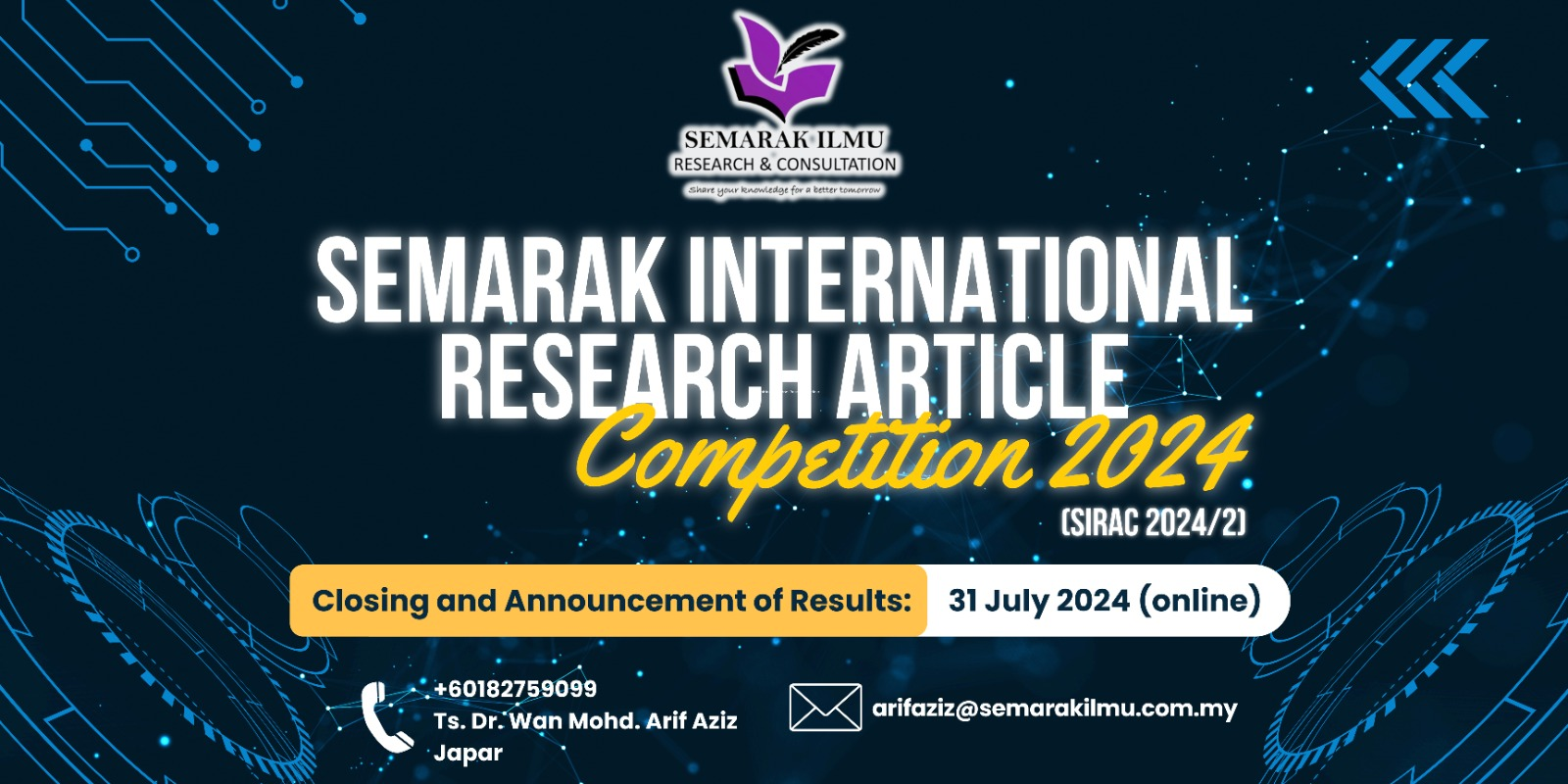 We are delighted to announce the results of the Semarak International Research Article Competition 2024 II (SIRAC 2024 II). This year's competition was a resounding success, showcasing exceptional research talent from across the globe. We received a diverse range of insightful and innovative research articles, making the selection process both challenging and rewarding. Congratulations to the Winners! For detailed information about all the recipients and their achievements, please visit the following link: List of All Winners! We extend our heartfelt congratulations to all winners and participants for their outstanding contributions. Your dedication to research excellence and innovation is truly inspiring. Thank you to everyone who participated and supported this year's competition. We look forward to seeing more groundbreaking research in the future!