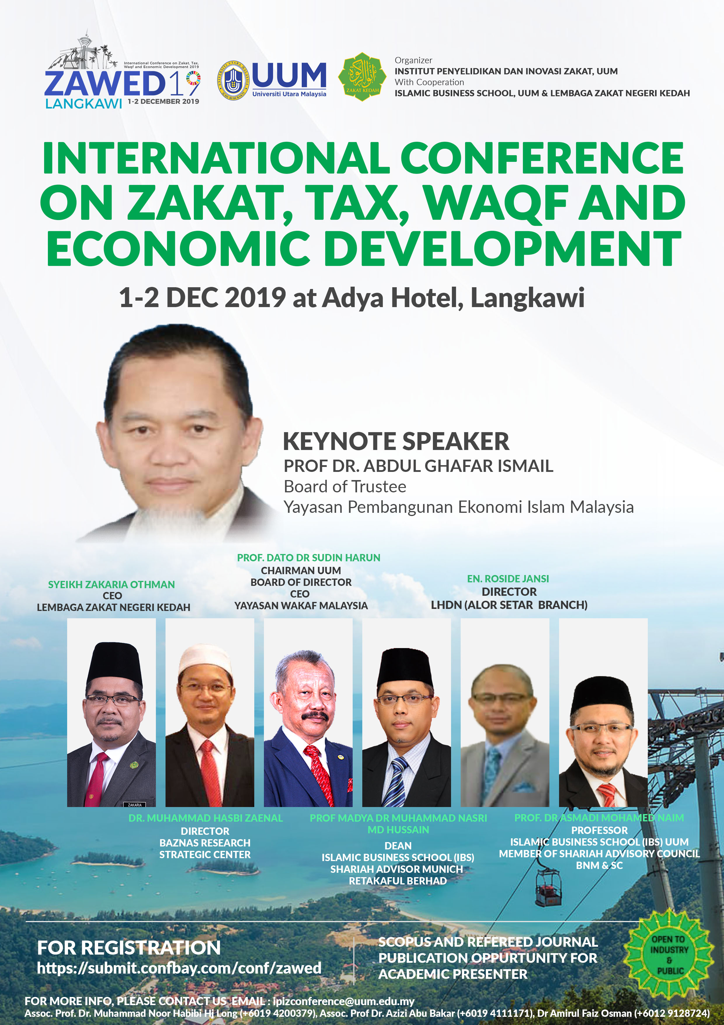 This conference provide a platform for postgraduate, academician and practioners globally to present their research results, development activities and share their experiences, new ideas, and research results about zakat, tax, waqf, halal and economic development. Organized by Institute of Zakat Research and Innovation (IPIZ) in collaboration with Islamic Business School (IBS) and Lembaga Zakat Negeri Kedah (LZNK). The objectives of this conference are to introduce and manifest the concepts and operational management of zakat, tax, waqf, baitulmal, hibah and the development of Islamic economics and business to zakat institutions, academicians, post graduate students, as well as civil servants and private sector employees.