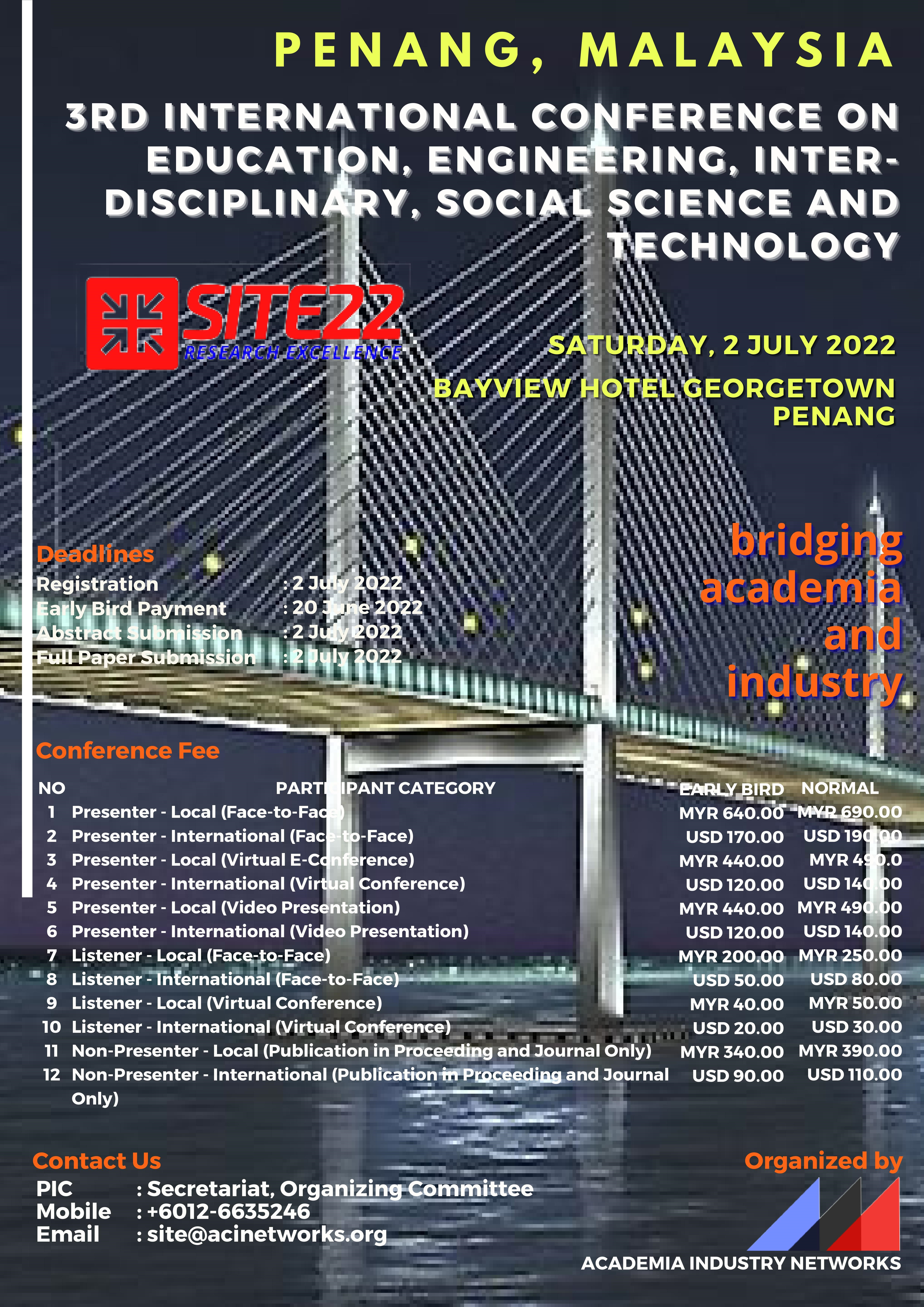 Special discount will be given for group registration (3 participants or more). Please do not hesitate to contact the Conference Secretariat/Conference Chairman for further information.