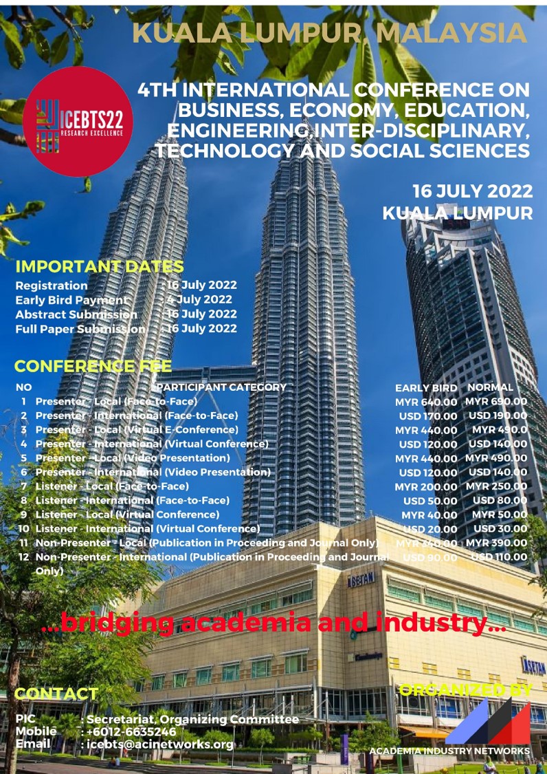 Special discount will be given for group registration (3 participants or more). Please do not hesitate to contact the Conference Secretariat/Conference Chairman for further information.